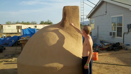 So this is the oven with the first coat of slip over the second coat of plaster. I will still have to go back and do more filling and blending but, it’s really getting close to being done.