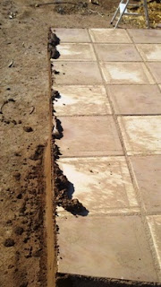 In order to repair the counter I had to begin by reattaching the tiles that had come loose. I found that you have sweep away any and all loose debris and remove any of the grout surrounding the tiles to be replaced. I tried using water to soften the mortar bed but, it wasn’t the best and some tiles didn’t set. So I mixed up a clay slip and used that to soften the mortar bed and it worked much better. I also used the slip to brush on the back side of the tiles to help them adhere better. Some of the smaller tiles on the back side of the counter had to have more mortar added to the bed to rebuild the holes from the rain so that the tiles sit level again.