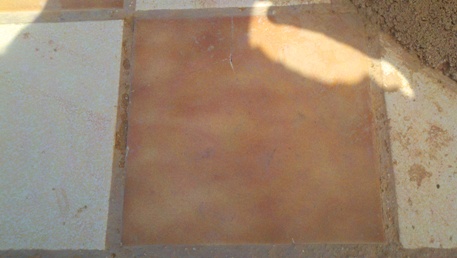 So I went out to work on plastering the dome and I noticed a broken tile. I’m not sure what hit the tile but, whatever it was it sure did the job. It could have been something from the big dust storm we had or maybe something was dropped on it. Whatever it was that happened I’m not sure but, I think I need to replace it.
