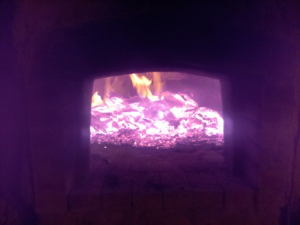 Now as it was explained to me the final firing had to be at an extreme heat for a several hour duration. This would help cure the thermal layer, force any expansion required and begin to change the inside layer of the oven to terra cotta. So I built a good hot fire for the last curing fire. I started building the fire at about 11:00 AM and continued to build it up until about 9:00 PM.